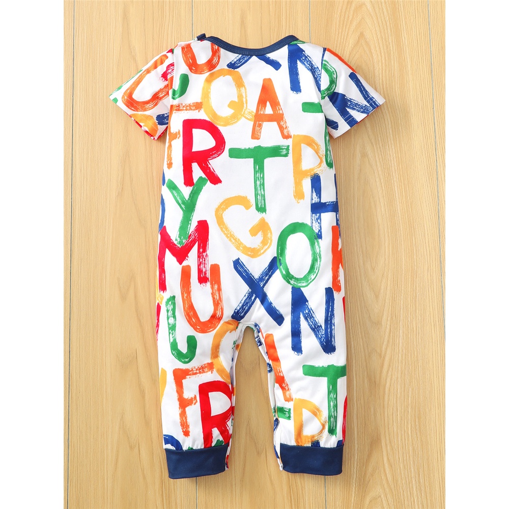 Giới thiệu Áo liền quần Mikrdoo ngắn tay in chữ cho bé trai 0-18 tháng tuổi