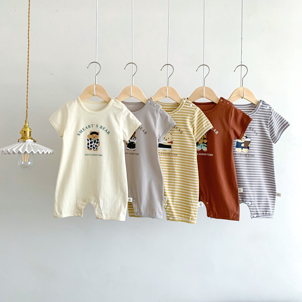 Giới thiệu Áo Liền Quần Ngắn Tay In Hình Gấu Cho Bé Sơ Sinh Từ 0-24 Tháng Tuổi