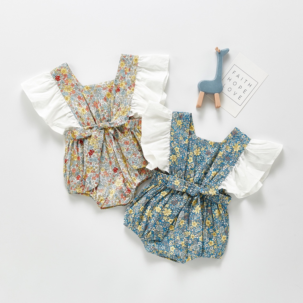 Giới thiệu Áo liền quần Sát Nách Phối Bèo Hoạ Tiết Hoa Cho Bé Gái
