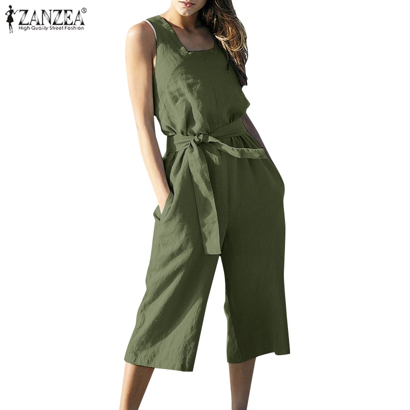 Giới thiệu Áo liền quần ZANZEA cổ vuông không tay cổ vuông có túi phối khóa kéo thời trang đi biển cho nữ