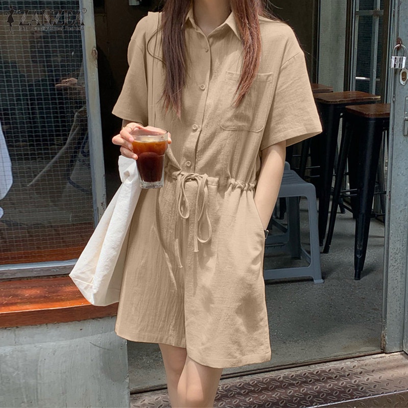 Giới thiệu Áo liền quần ZANZEA tay ngắn dáng rộng màu trơn phối dây rút phong cách thời trang dạo phố cho nữ