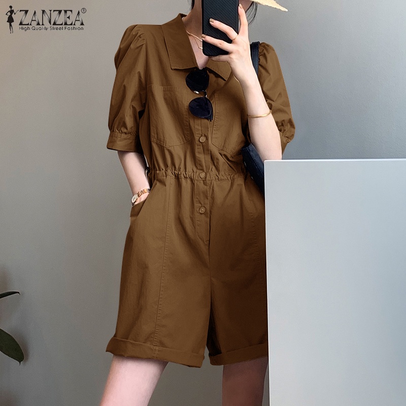 Giới thiệu Áo liền quần ZANZEA tay phồng cổ bẻ dáng rộng phối dây rút phong cách Hàn Quốc thời trang cho nữ