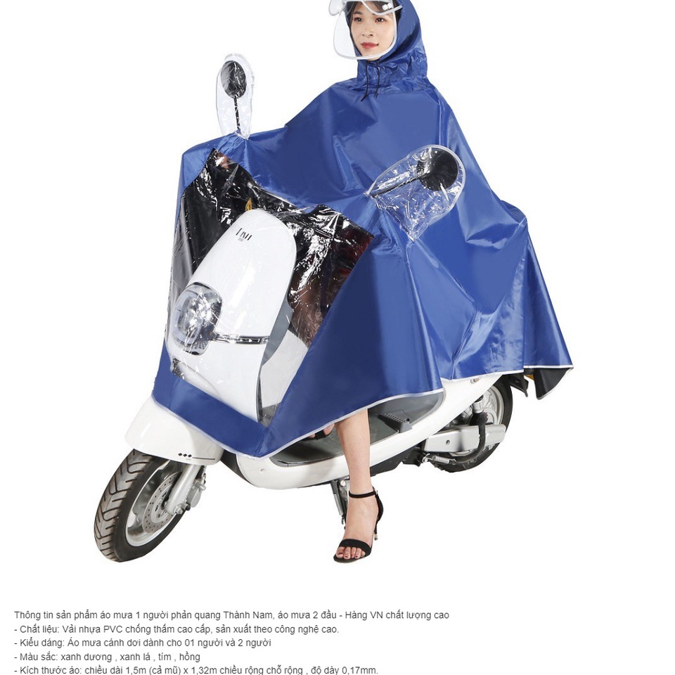 Áo mưa cánh dơi xe máy che mặt phản quang 1 mũ vải PVC chống thấm nhanh khô không bị hôi 1m5 x 1m32