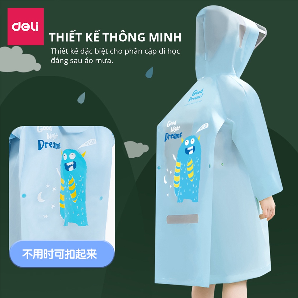 Giới thiệu Áo Mưa Trẻ Em Deli - Siêu Dày Chống Thấm Nước Có Phản Quang Phơi Mau Khô Che Kín Người Kèm Túi Đựng, Chất Liệu An Toàn