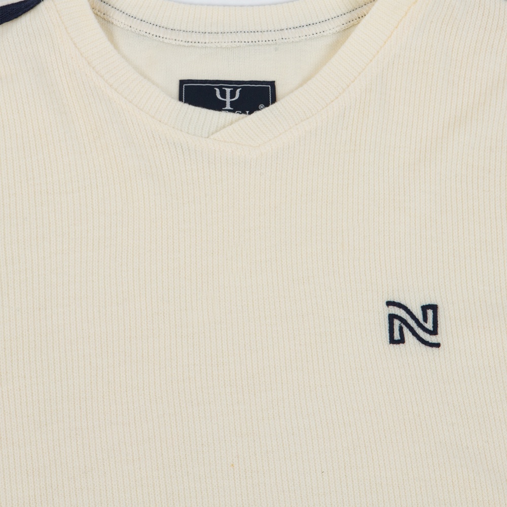 📍Tên sản phẩm: Áo nam thu đông dài tay Narsis D7082 len màu kem ép viền tím than