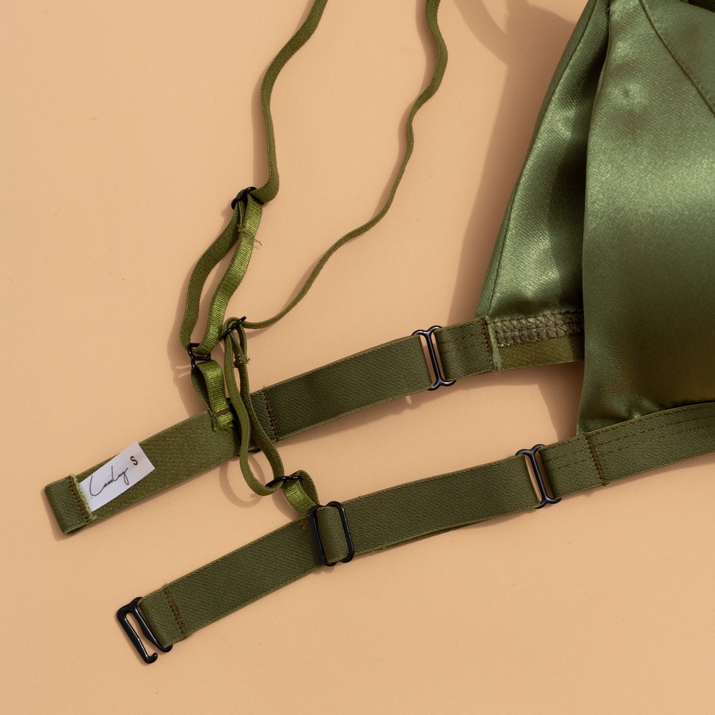 Giới thiệu Áo ngực không gọng Lamluy Bra lụa satin xanh rêu mềm mịn