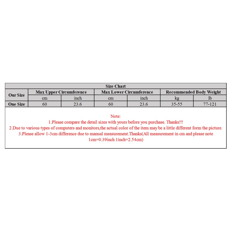 Thông số kỹ thuật ' Material 'Spandex Màu sắc 'Pink 'White'Flesh Color Kích thước - Một kích thước , Chu vi trên tối đa ' 60 cho cm '23,62 inch , Chu vi dưới tối đa ' 60 cho cm '23,6 inch, Trọng lượng cơ thể đề xuất ' 35-55 kg '77-121 lbs