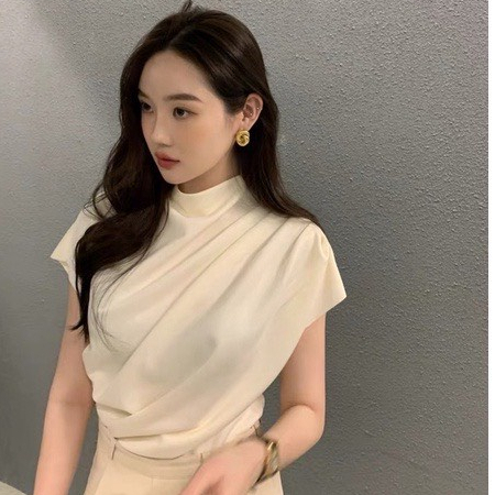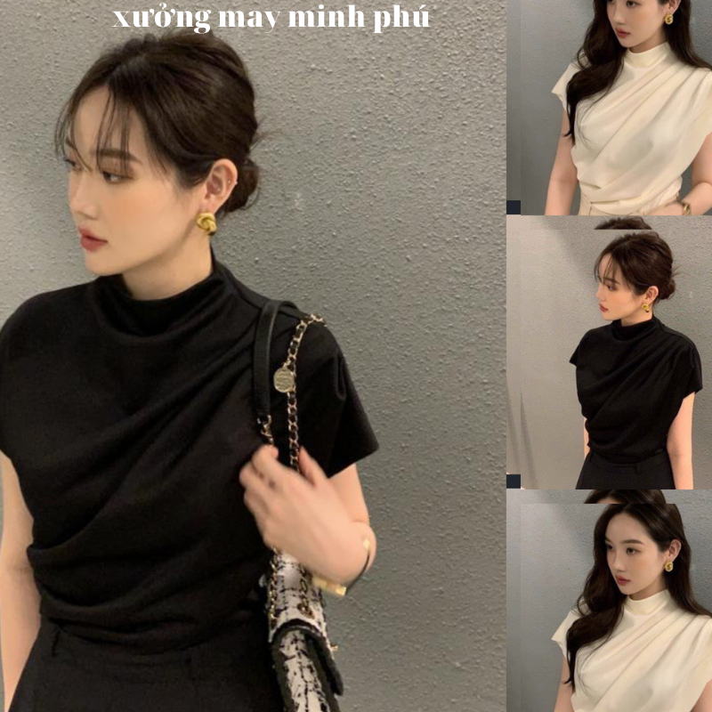 ÁO NHÚN VAI CHẤT COTTONG ZIP MỀM MỊN HÀNG LOẠI 1, ÁO CỘC TAY NỮ XẾP LY VAI CỔ HẾN SANG TRỌNG