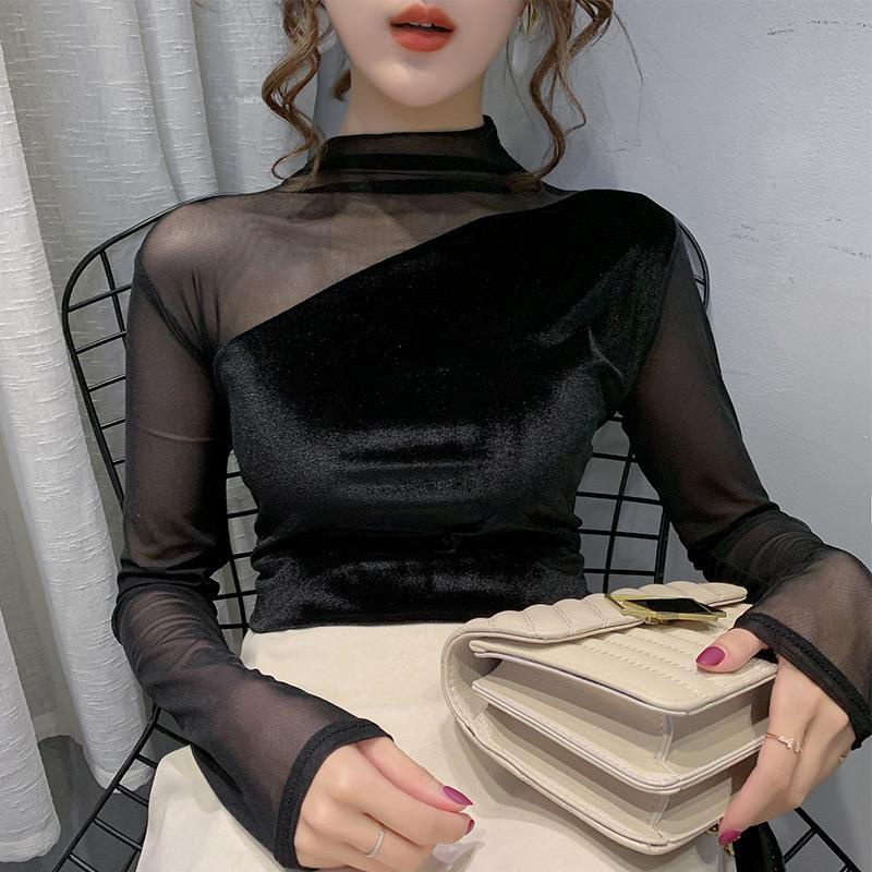 Giới thiệu Áo Nhung Cổ Lọ Phối Lưới Phong Cách Châu Âu Thời Trang Mùa Thu 2021