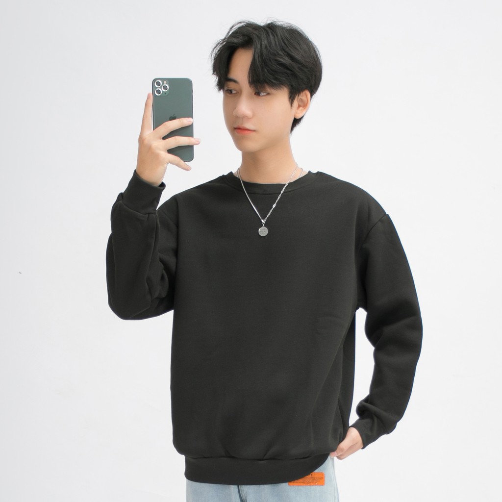 Thời Trang Nam > Áo Hoodie, Áo Len & Áo Nỉ > Áo Nỉ > Áo Nỉ Nam Trơn Dài Tay Không Cổ MANDO Chất Nỉ Bông Cao Cấp Form Rộng Nhiều Màu Basic Unisex Thời Trang Hàn Quốc NDN054