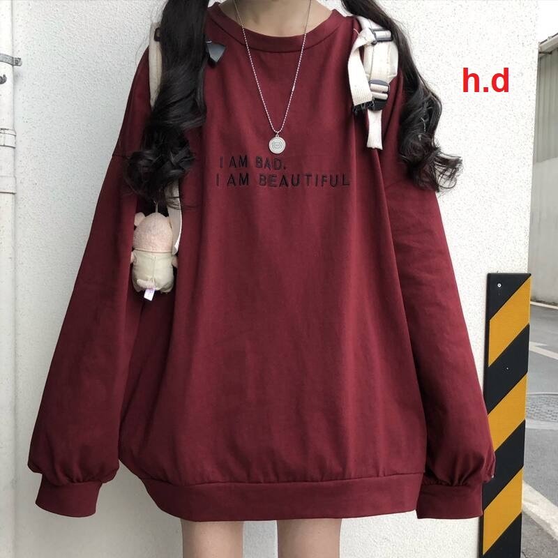 Thời Trang Nữ > Hoodie và Áo nỉ > Khác > Áo nỉ tay bồng in hình Kid nữ - Rere.Store [FREESHIP] G18-3- Sweater dài tay form rộng dáng suông, thiết kế cá tính