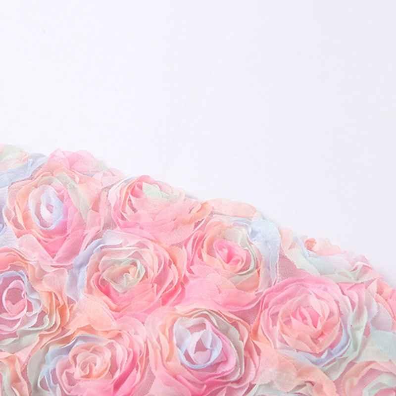 Phụ nữ Sexy Strapless Crop Tube Top 3D Mesh Rose Flowers Shirred Bandeau Camisole Thương hiệu mới và chất lượng cao