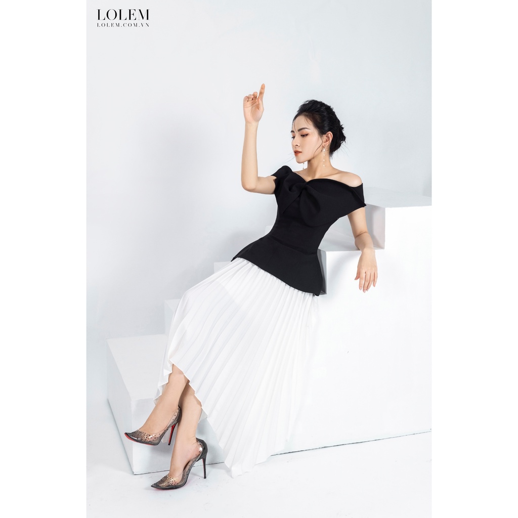Giới thiệu Áo peplum LOLEM AK1251 thiết kế rớt vai phối nơ ngực vải thun lì mềm mịn khó nhăn