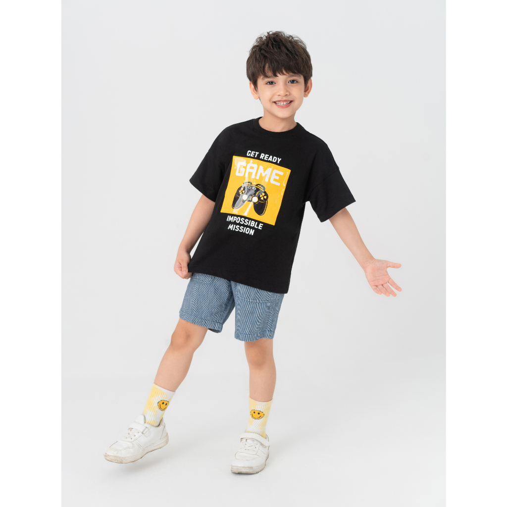 Giới thiệu Áo phông bé trai CANIFA chất liệu 100% cotton, cổ tròn tra bo, tay cộc 2TS23S018