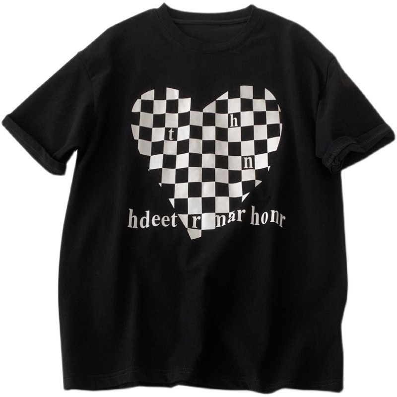 Giới thiệu Áo Phông Cộc Tay Kẻ Caro Hình Trái Tim Unisex Form Rộng,Áo Thun Cottton Nam Nữ Chất Mát Dễ Chịu