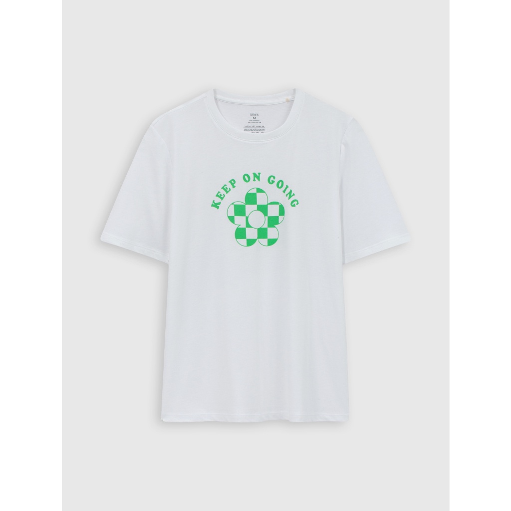 Giới thiệu Áo phông nữ CANIFA in nhỏ cổ tròn tra bo, tay cộc 6TS23S021