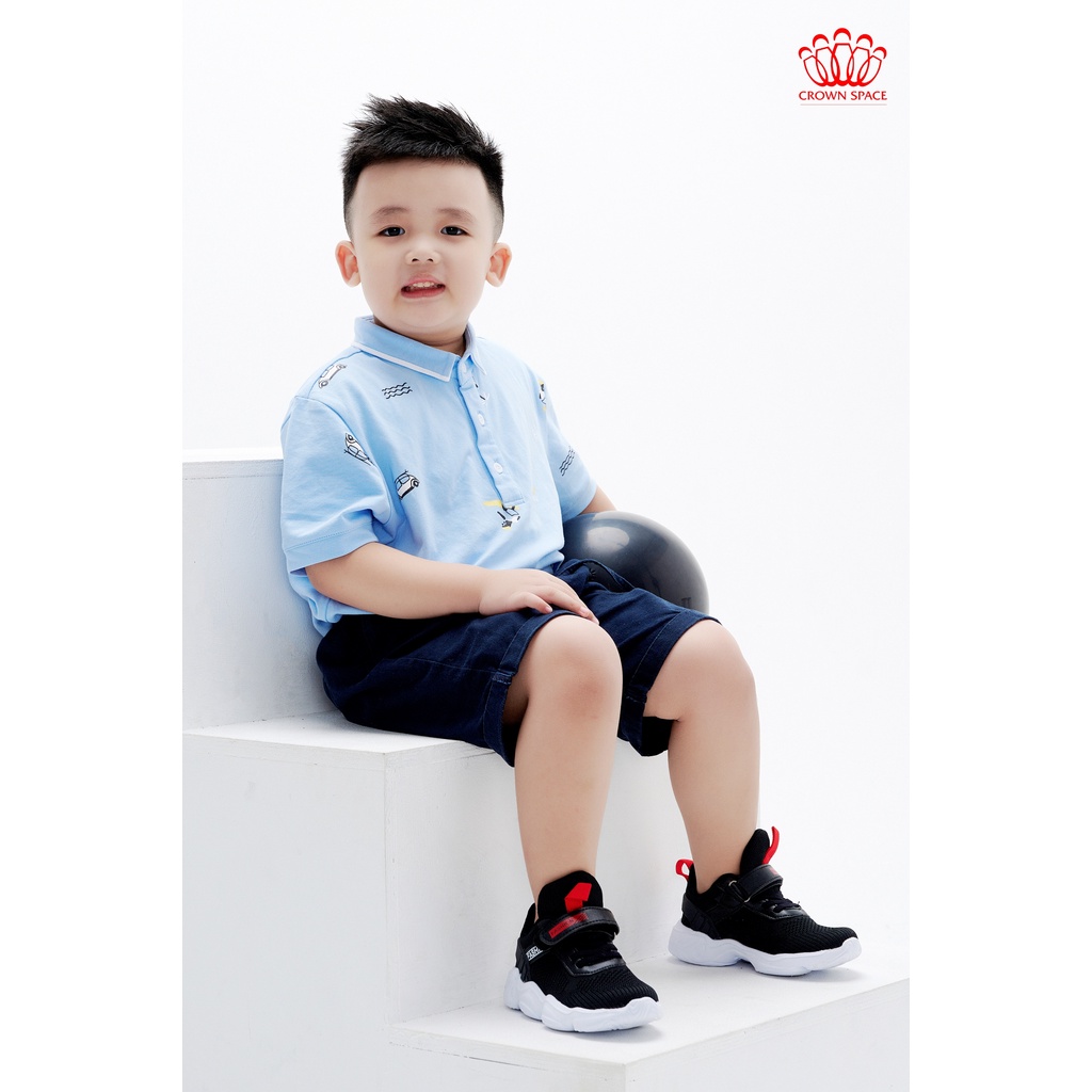 Giới thiệu Áo Polo Bé Trai Đi Biển Đi Học Đi Chơi Crown Space CKBS2120506 Màu Xanh Dương - Cotton Thoáng Mát Siêu Thấm Hút