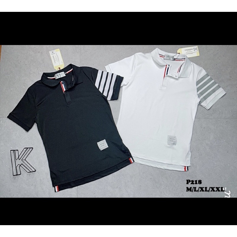 Giới thiệu Áo polo cộc tay Thom Brown thời trang nam có họ tiết, Áo cổ bẻ phong cách hàn quốc cotton btshop từ 45 đến 75 kg