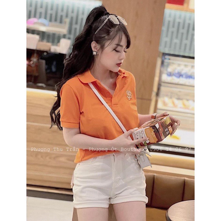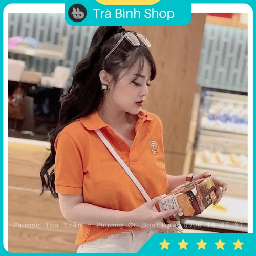 Giới thiệu Áo polo màu cam thêu FS cho nữ chất cá sấu cao cấp, áo polo chất cotton thấm hút mồ hồi màu cam nổi bật