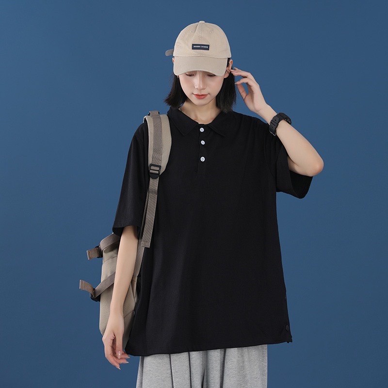 Giới thiệu Áo polo tay lỡ trơn đơn giản nam nữ đều mặc, chất cotton mặc đi học đi chơi đều đẹp A1