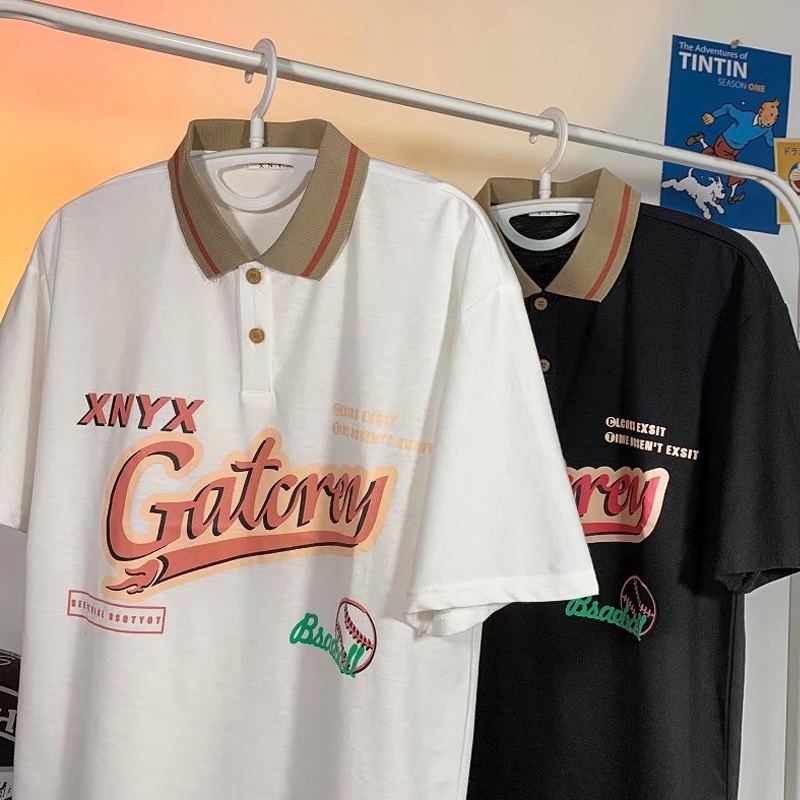 Giới thiệu Áo polo Tay Ngắn Dáng Rộng In Chữ Phối Màu Tương Phản Kiểu Hàn Quốc Thời Trang Mùa Hè Cho Nam