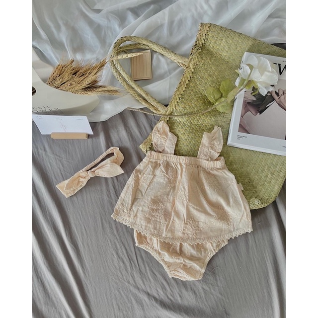 Giới thiệu Áo + quần + băng đô hoạ tiết in vân nổi mùa hè bé gái