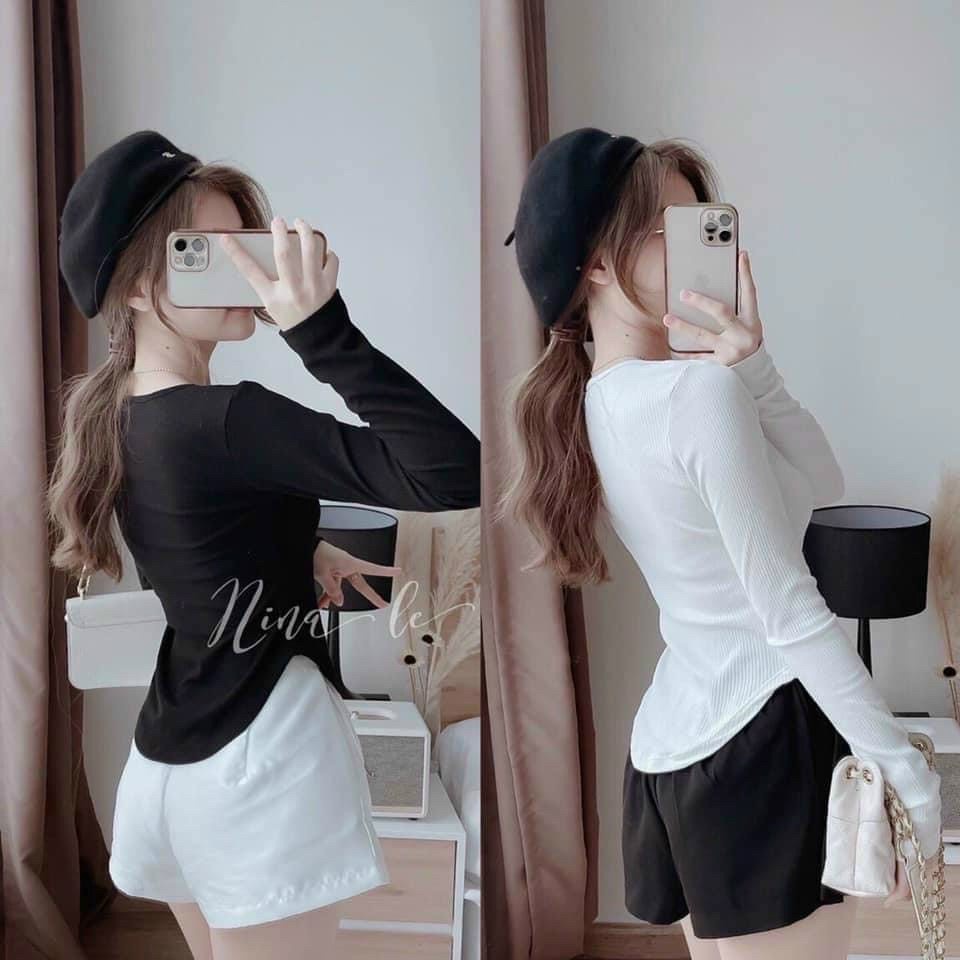 Thời Trang Nữ > Áo > Áo thun > Áo quảng châu cổ U tay dài vạt bầu trơn cực hot , chất gân tăm mềm mịn ( ảnh thật )