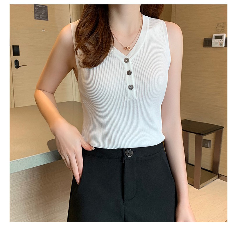 Giới thiệu Áo sát nách cổ chữ V đính cúc ngực T8702