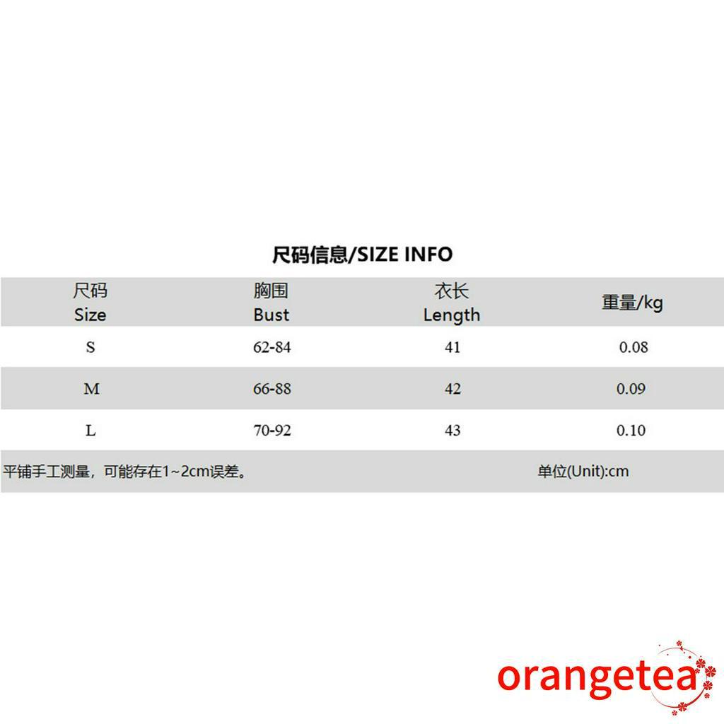 Size chart: Size (cm) S Bust: 62-84 Length: 41 M Bust: 66-88 Length: 42 L Bust: 70-92 Length: 43 Size (inch) S Bust: 24.41-33.07 Length: 16.14 M Bust: 25.98-34.65 Length: 16.54 L Bust: 27.56-36.22 Length: 16.93