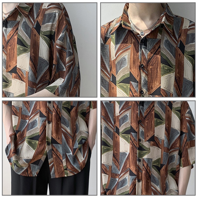 Giới thiệu Áo sơ mi AOKANG tay ngắn dáng rộng in họa tiết graffiti phong cách Hàn Quốc mùa hè trẻ trung thời trang dành cho nam