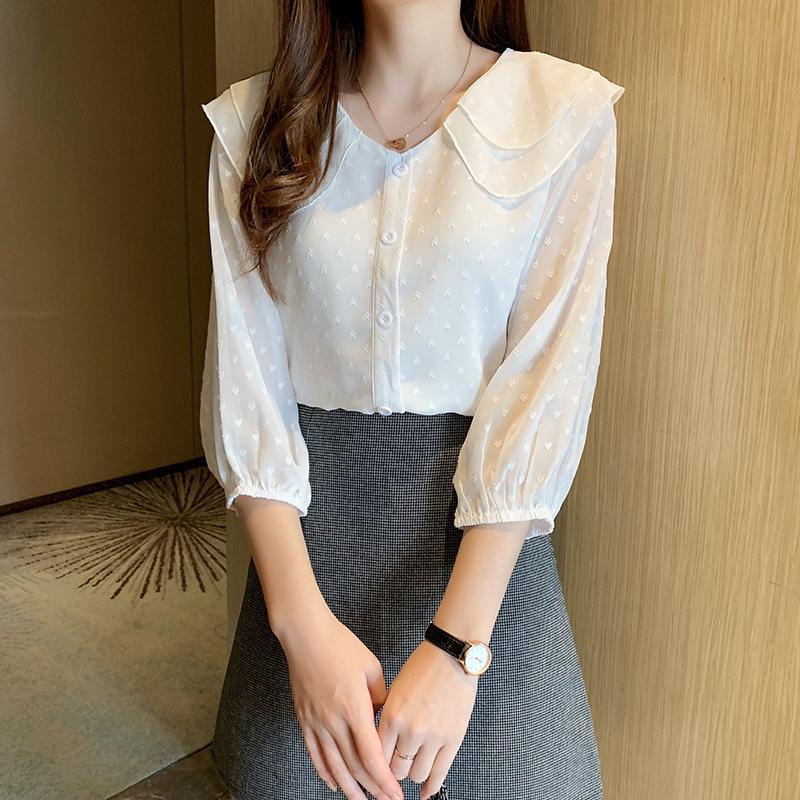 Giới thiệu Áo sơ mi BH cổ búp bê tay dài lửng vải voan dành cho quý cô