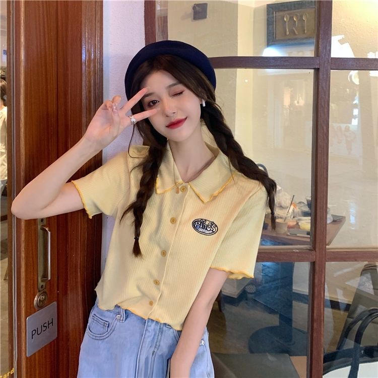 Vải / chất liệu: Sợi polyester / polyeste Yếu tố thời trang: thêu, nút, độ tương phản màu sắc Phong cách 'Ngọt ngào và tươi mát'collegiate Chiều dài'Chiều dài tay áo 'Kiểu ngắn Phiên bản quần áo mỏng Loại đèn Led ’ POLO Tuổi: 18 đến 28