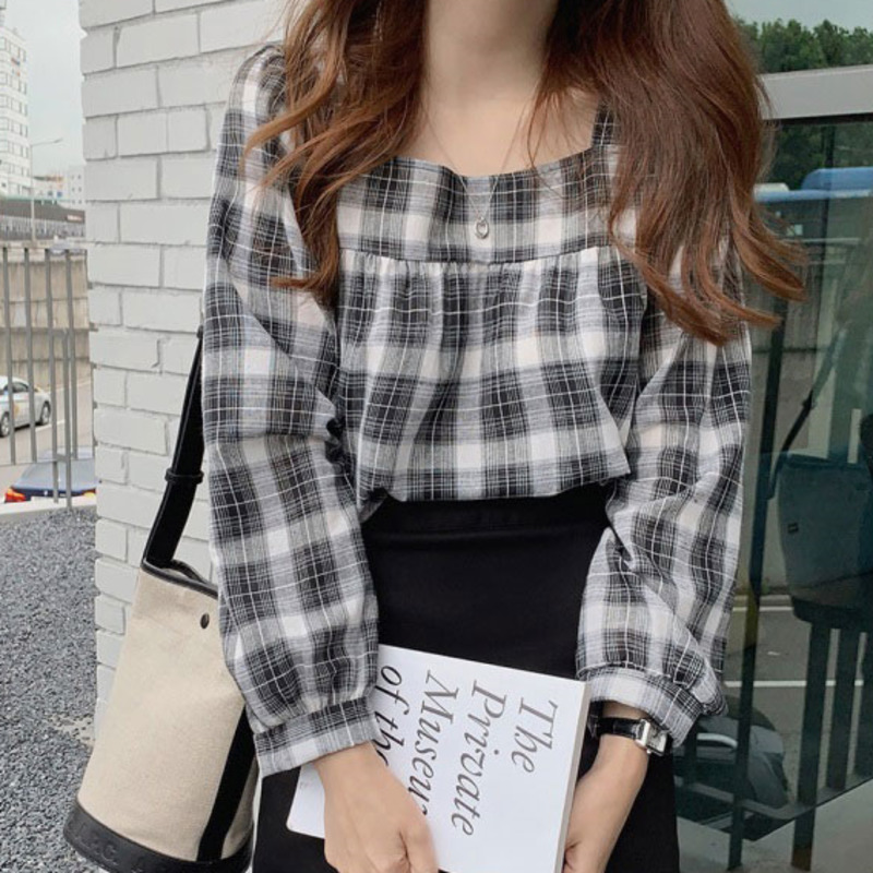 Giới thiệu Áo Sơ Mi Ca Rô Dài Tay Cổ Vuông Theo Phong Cách Retro