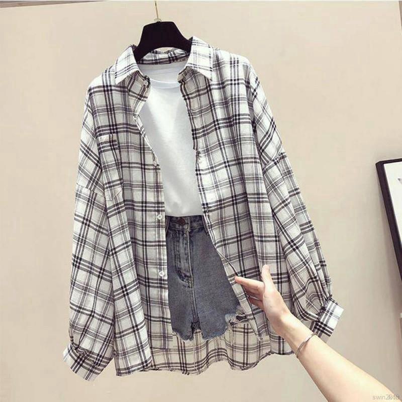 2.Basic plaid pattern long sleeve top makes you relaxed and cozy.