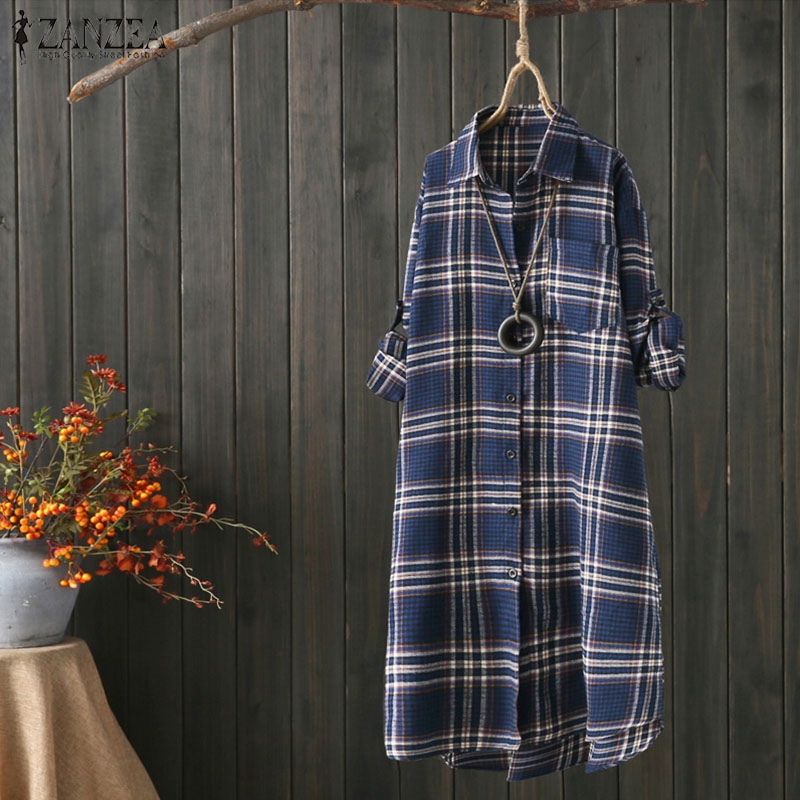 Giới thiệu Áo sơ mi caro ZANZEA dáng rộng thời trang cho nữ