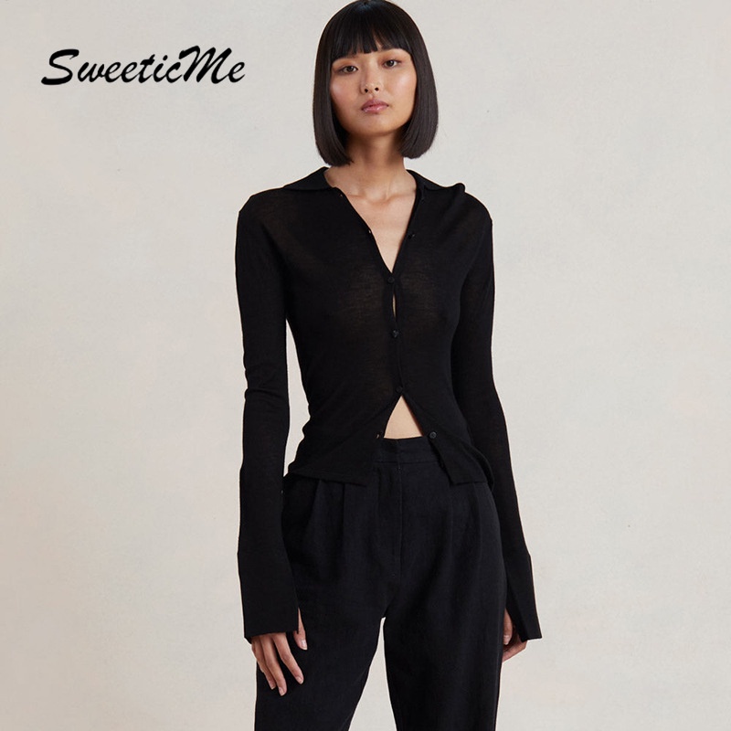 Giới thiệu Áo Sơ Mi Cổ POLO Cài Nút Tay Loe Màu Trơn Thời Trang Dành Cho Nữ