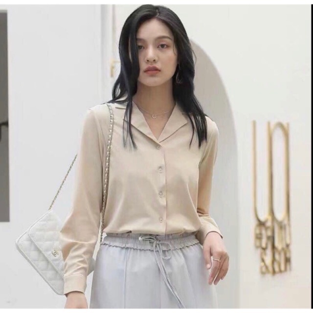Áo sơ mi cổ vest, Chất voan lụa đẹp nhé các bạn Free size, tối đa 55kg tuỳ chiều cao. Có 4 màu: hồng nhạt, trắng, be, đen Sỉ lẻ lh 0904887883