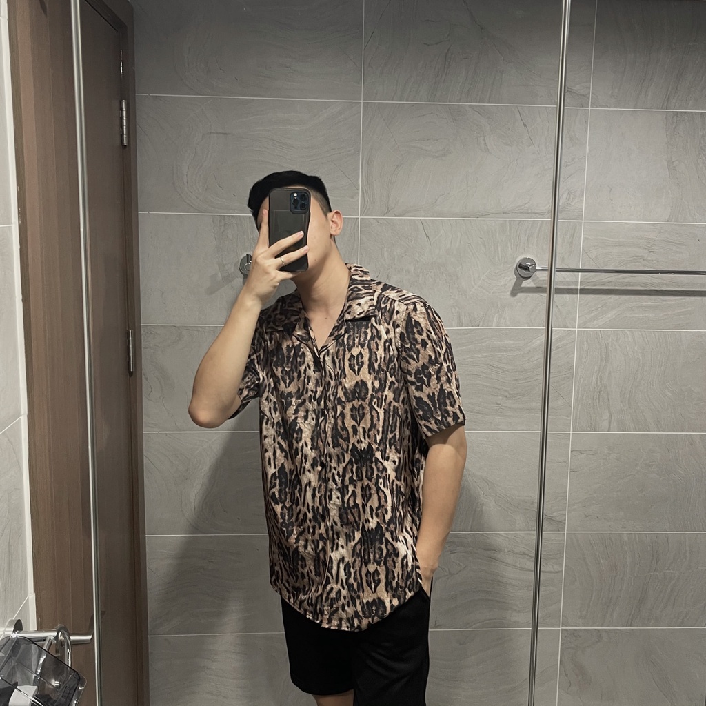 Giới thiệu Áo sơ mi cổ vest nam form rộng vải lụa thương hiệu thời trang mẫu Nâu Da Báo
