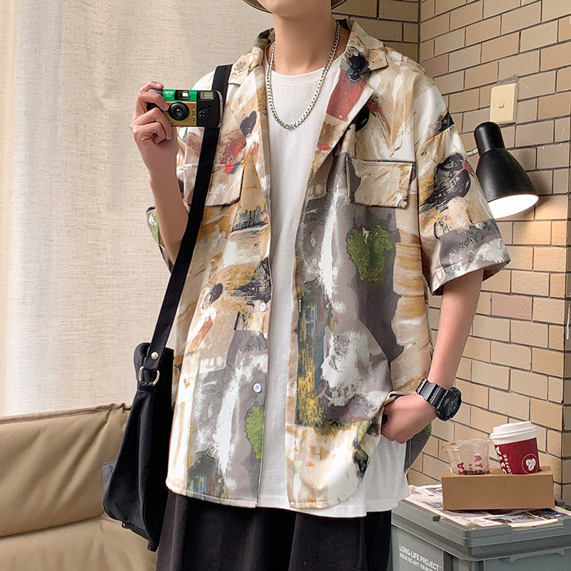 Áo sơ mi nam ngắn tay rộng rãi, thoải mái, giản dị, đa năng, thời trang, mát mẻ Thiết kế rất thời trang và quý ông. Chạm vào siêu mềm. Đây là món trang phục cần có trong tủ quần áo. Bạn có thể mặc hàng ngày. Phong cách thời trang đường phố.