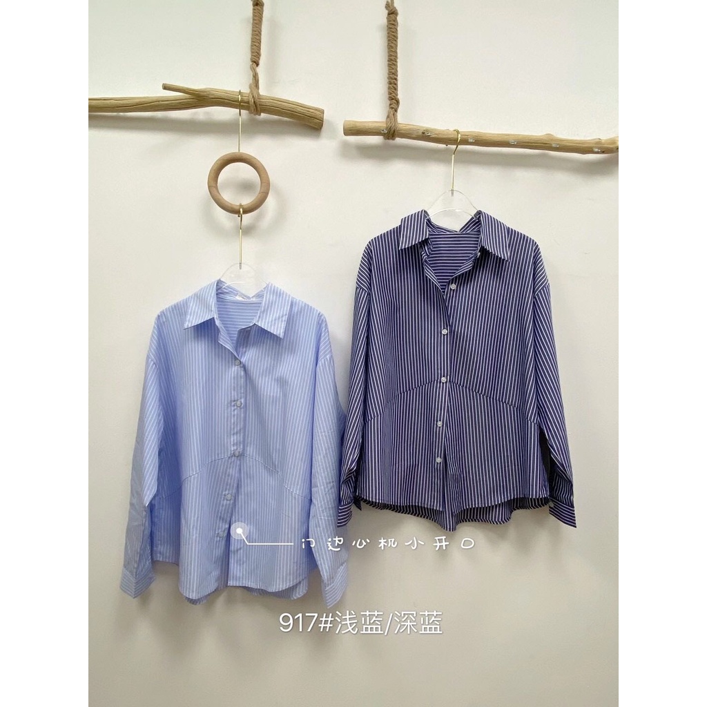 Giới thiệu Áo sơ mi họa tiết sọc xanh lam trắng thời trang mùa xuân 2021 cho nữ
