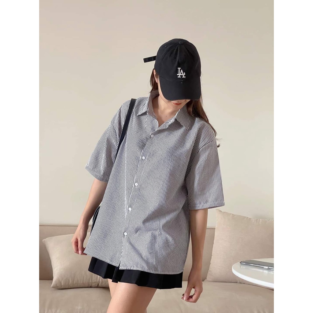 Giới thiệu Áo sơ mi kẻ tay ngắn chất xốp, Áo somi fom rộng phong cách Hàn Quốc