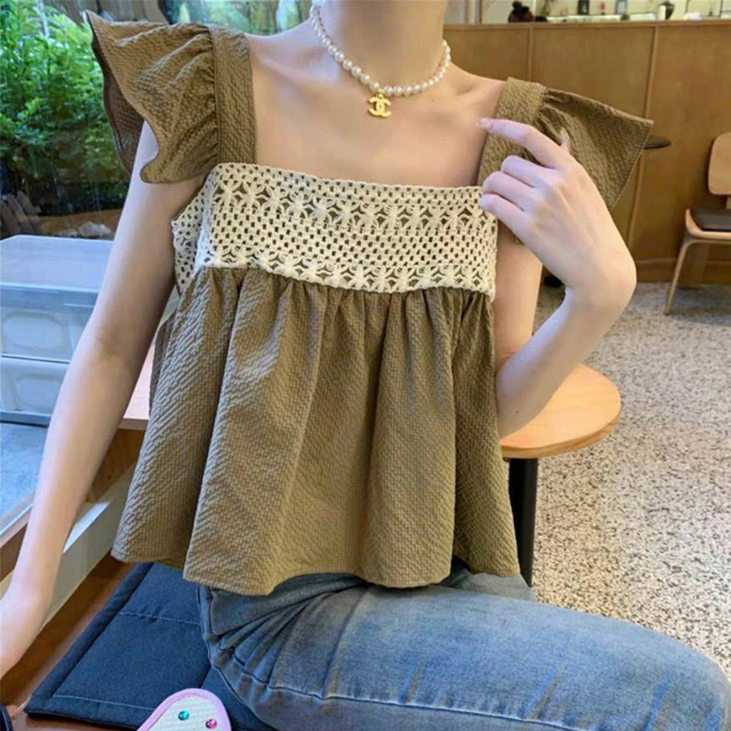 Giới thiệu Áo sơ mi kiểu nữ, Áo sơ mi cánh tiên sát nách phối ren mặc mùa hè thoáng mát