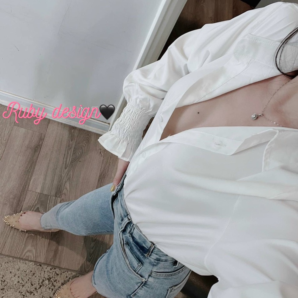 Giới thiệu Áo sơ mi kiểu nữ áo sơ mi nữ tay chun màu trắng tay dài vải thô lụa mềm phong cách Hàn quốc Ruby Design