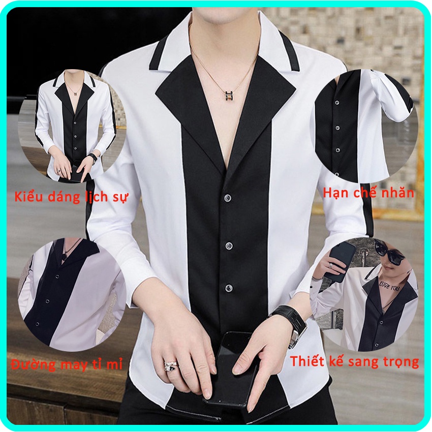 Giới thiệu Áo sơ mi nam, Áo sơ mi dài tay phối 2 màu chủ đạo đen trắng, chất vải có giãn nhẹ, không nhàu, không nhăn, mã N22