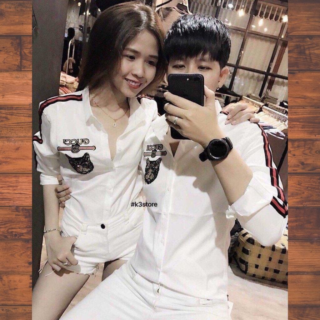 Giới thiệu Áo Sơ Mi Nam Chất Lụa Dài Tay Phối Sọc Tay Logo Thêu Mèo-shopgiare1995