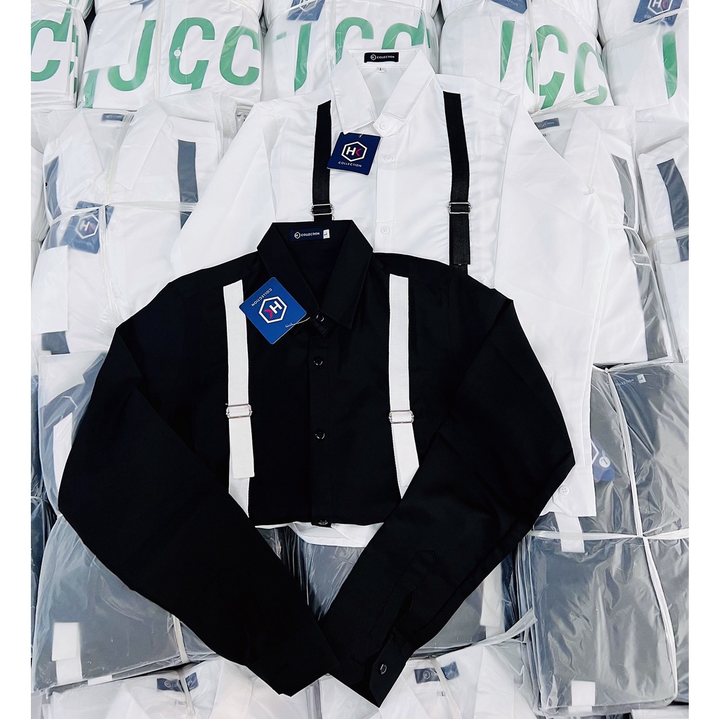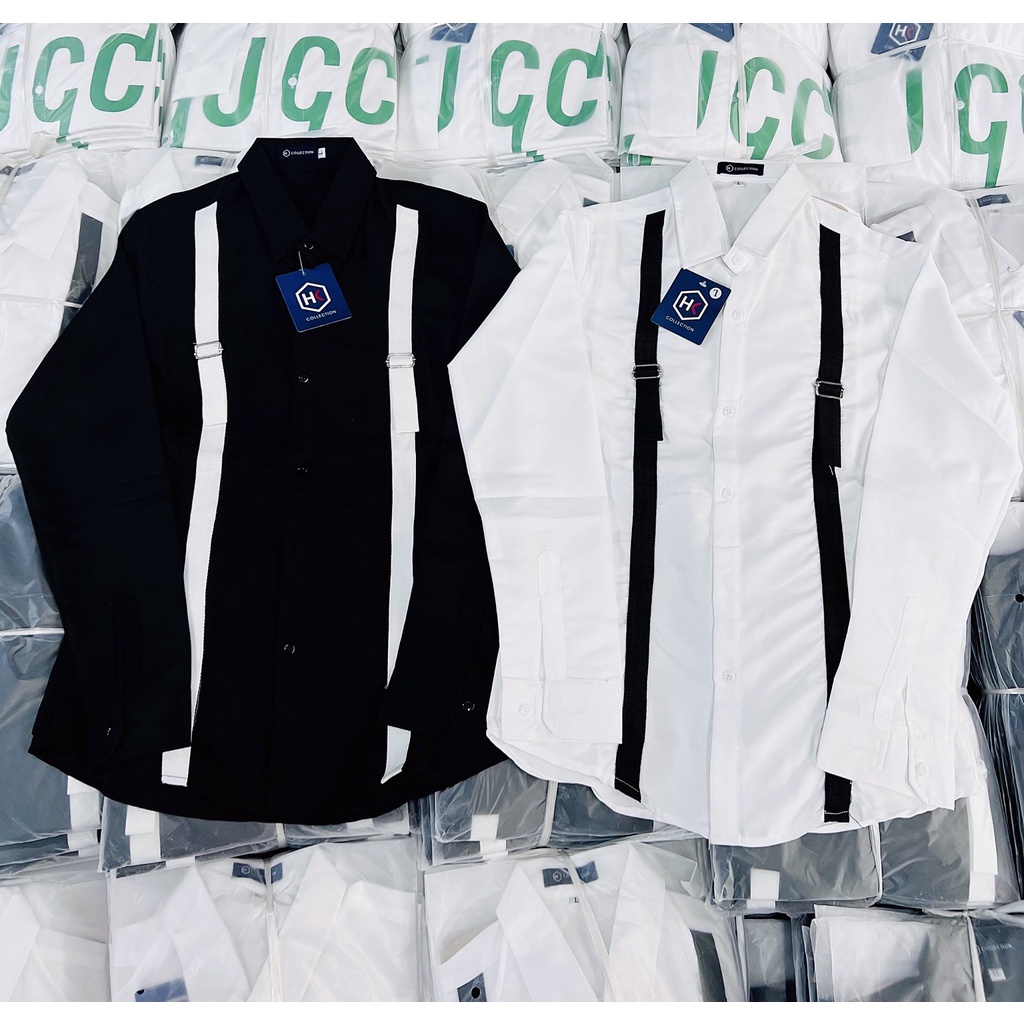 Giới thiệu Áo sơ mi nam dài tay đen trắng phối đai kiểu cách, vải siêu mát thấm hút mồ hôi VBSHOP019