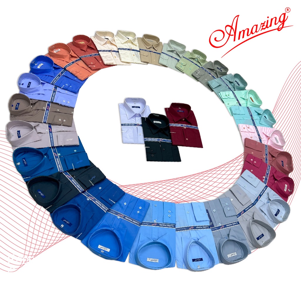 Thời Trang Nam > Áo > Áo Sơ Mi > Áo sơ mi nam màu trơn trung tuổi, phong cách công sở thanh lịch, form regular, dáng xuông, tay dài, có size lớn, Amazing