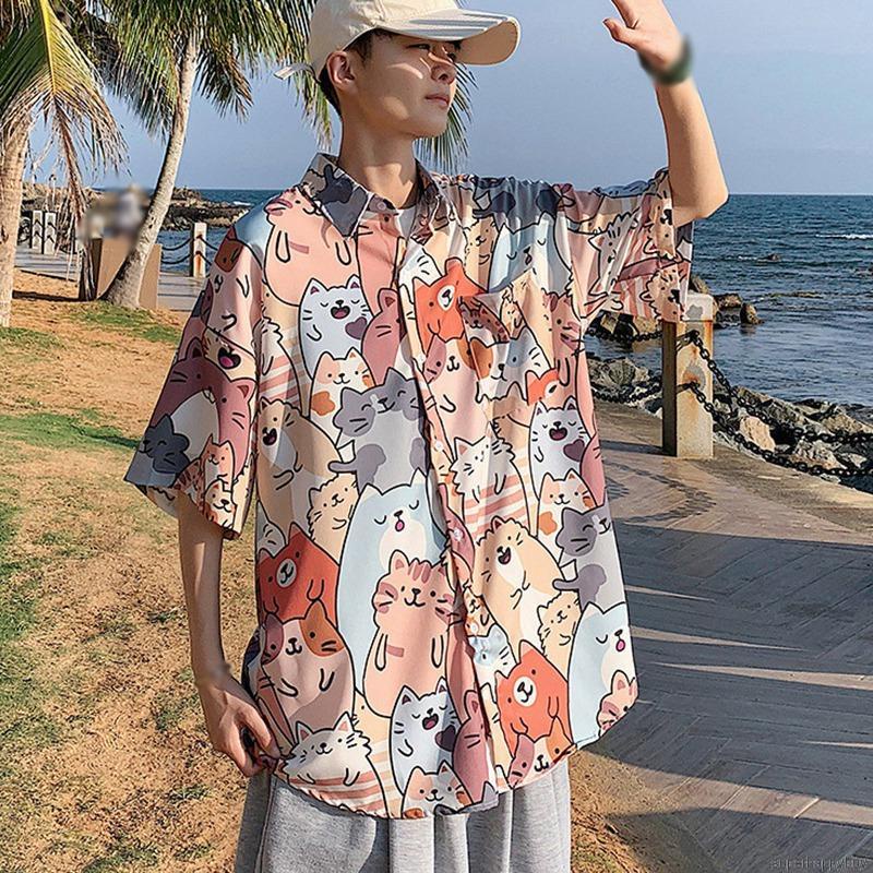 1. Features: short sleeves, printed, loose, versatile, ordinary shirts.