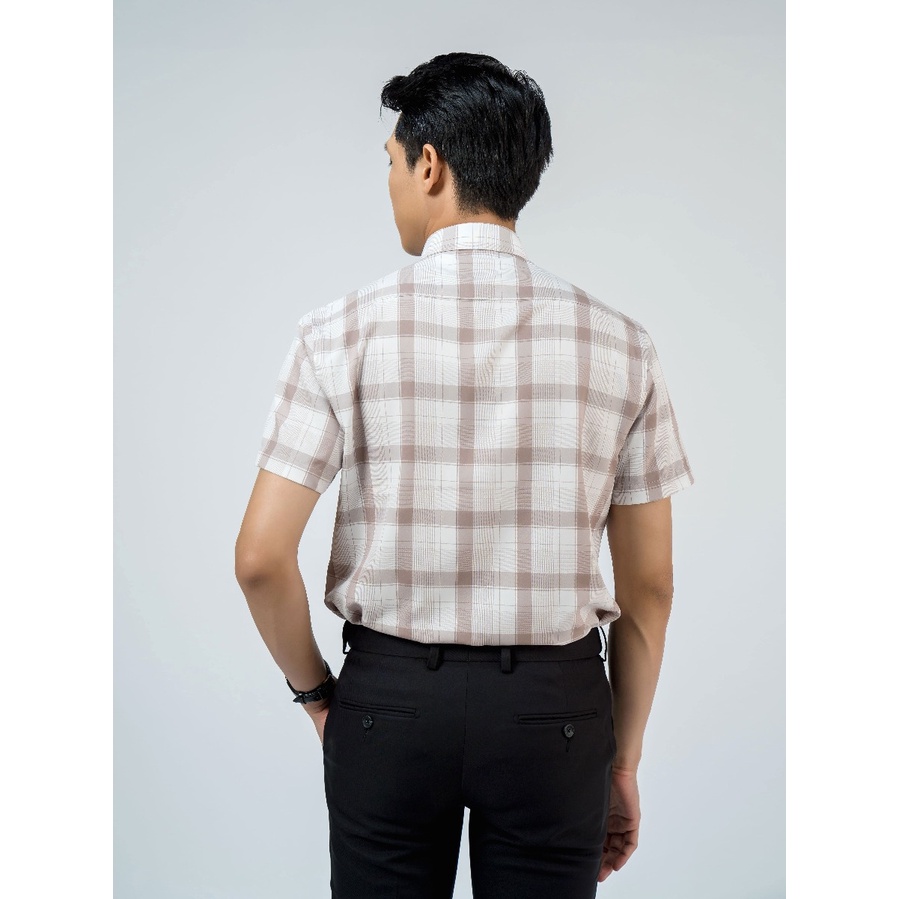 Áo Sơ Mi Nam Ngắn Tay OWEN BA220118NT Somi Công Sở Cao Cấp Màu Kẻ Caro Nâu Trắng Vải Nano Dáng Suông Tà Bằng Có Túi