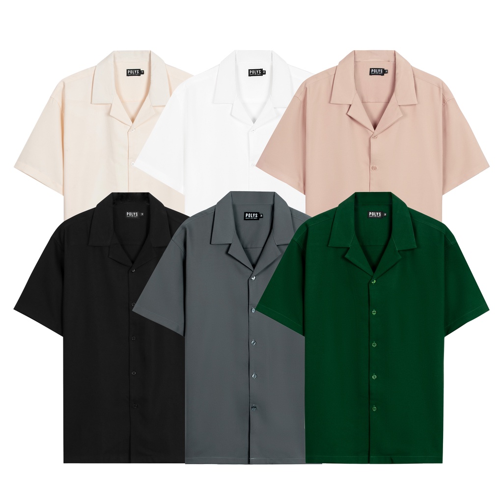Giới thiệu Áo sơ mi nam POLYS Fullbox, Vải Chéo Thái 6 Màu dày dặn, co giãn, thoáng khí. Áo sơ mi tay ngắn Cổ Vest CUBAN SHIRT
